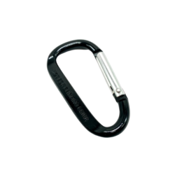 This carabiner features a split ring. Attaches to belt loops, straps and bag handles.